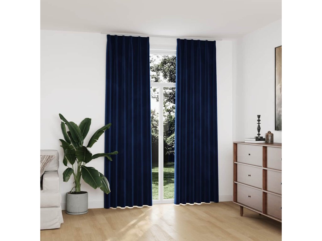Zatemňovací závěsy s háčky 2 ks sametové tmavě modré 140x245 cm 134534