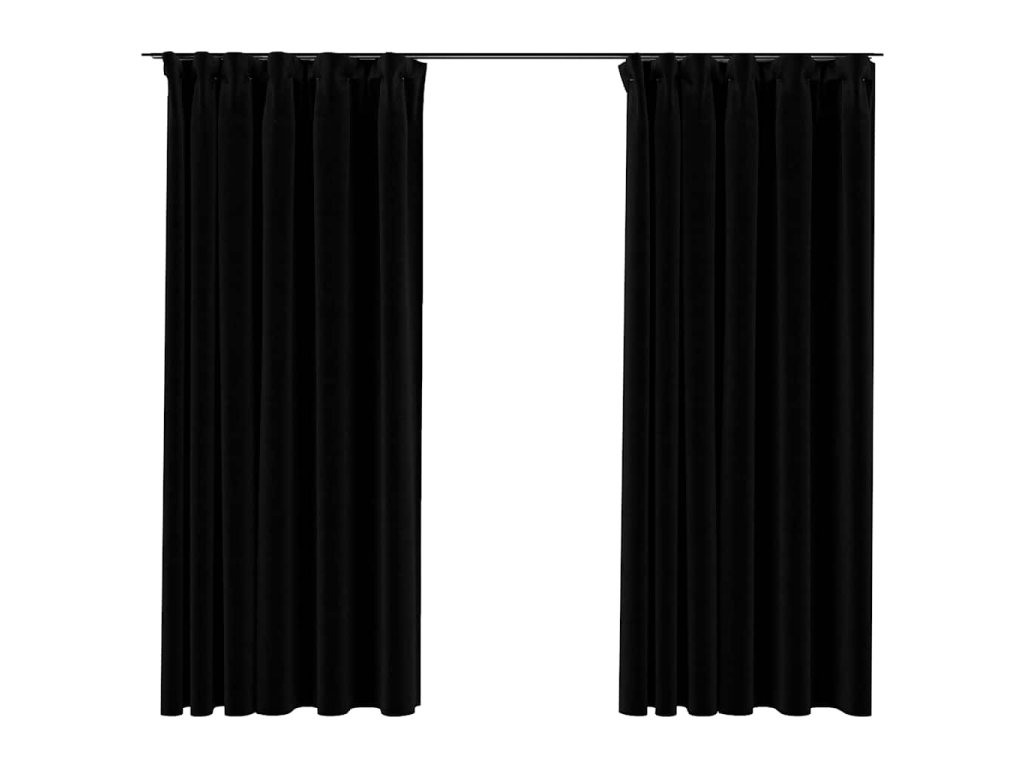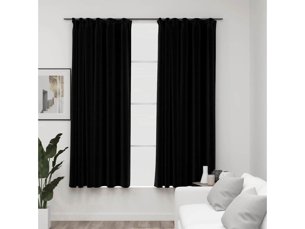 Zatemňovací závěsy s háčky vzhled lnu 2 ks černé 140 x 175 cm 321156