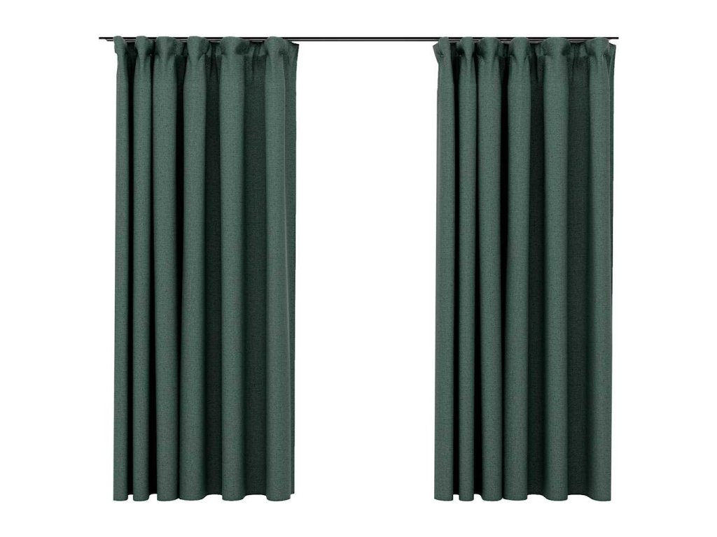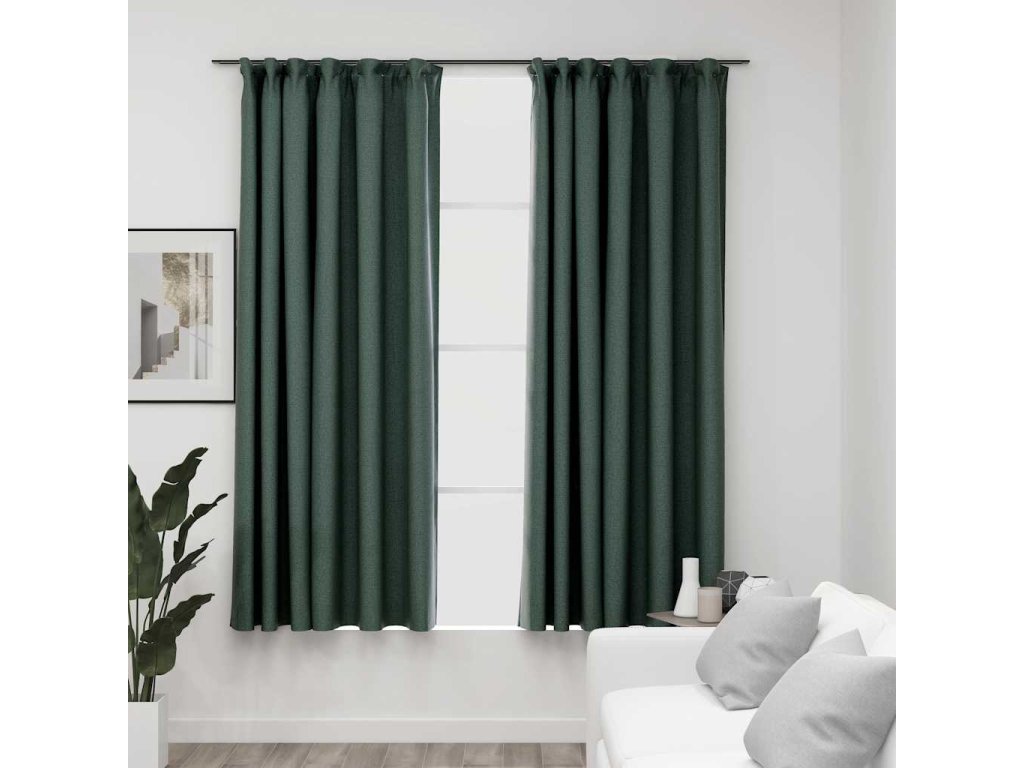 Zatemňovací závěsy s háčky vzhled lnu 2 ks zelené 140 x 175 cm 321188