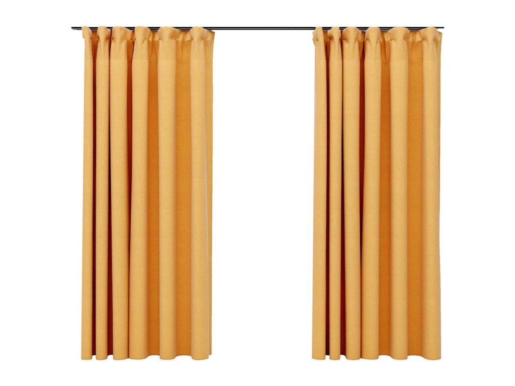 Zatemňovací závěsy s háčky vzhled lnu 2 ks žluté 140 x 175 cm 321196