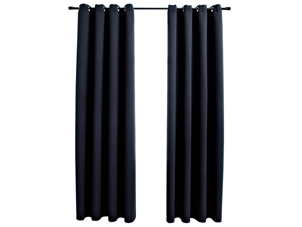 Zatemňovací závěsy s kovovými kroužky 2 ks černé 140 x 175 cm 134410