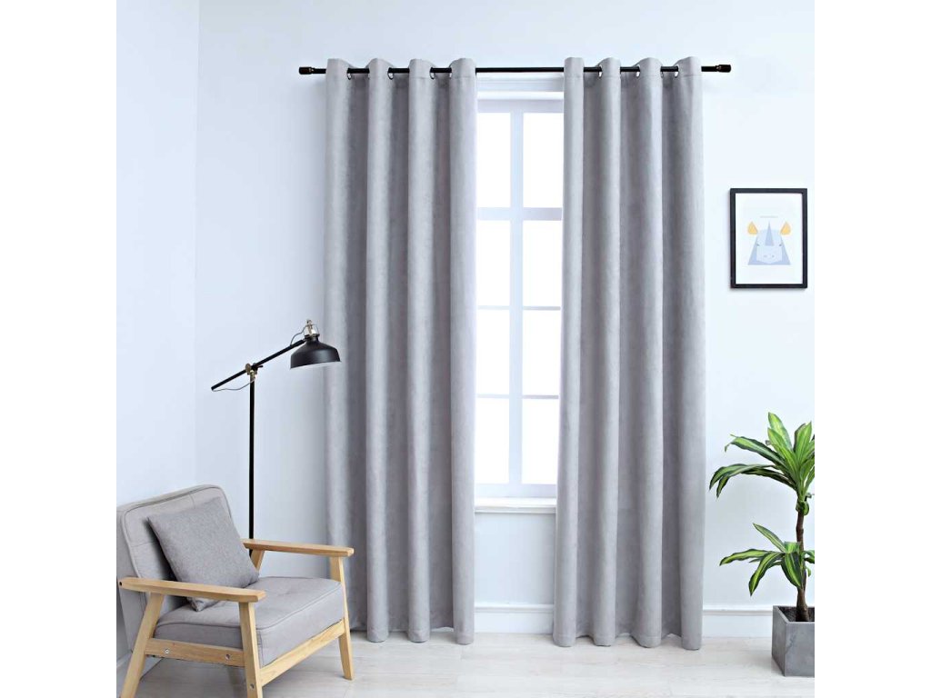 Zatemňovací závěsy s kovovými kroužky 2 ks šedé 140 x 245 cm 134466