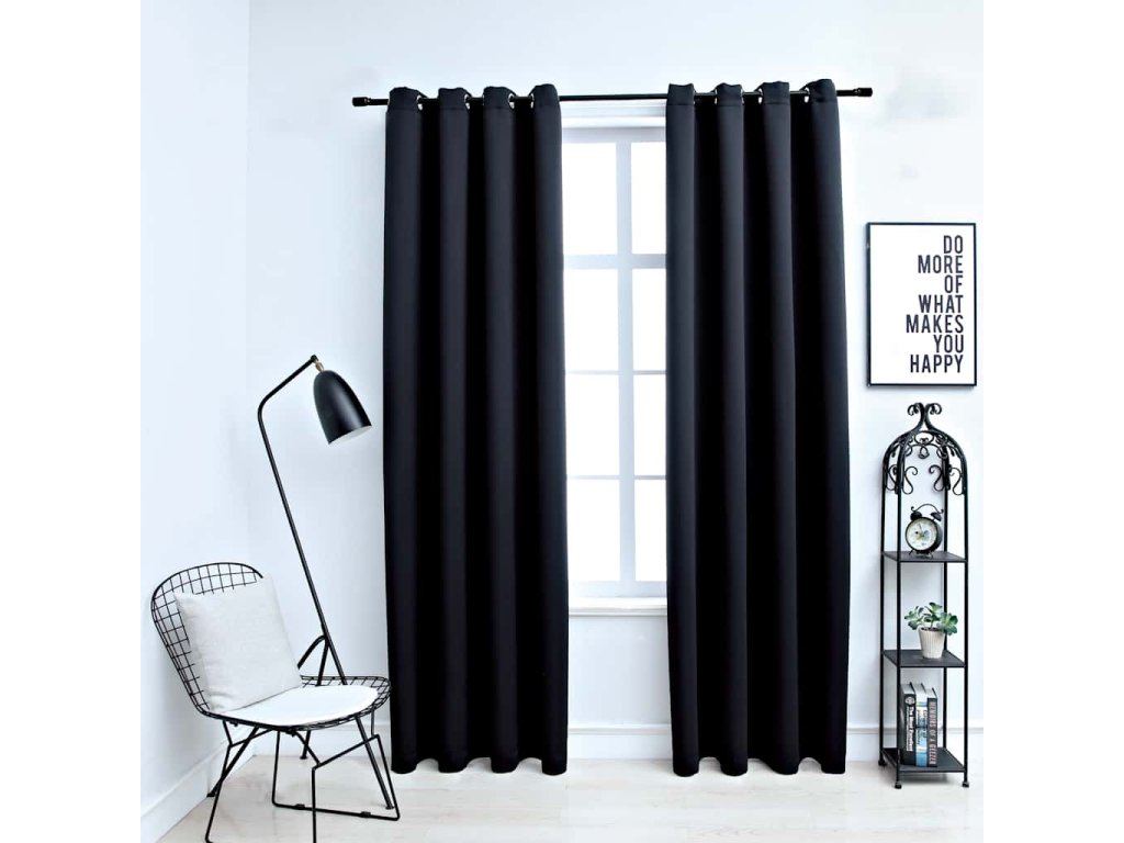 Zatemňovací závěsy s kroužky 2 ks černé 137 x 213 cm látkové 134838
