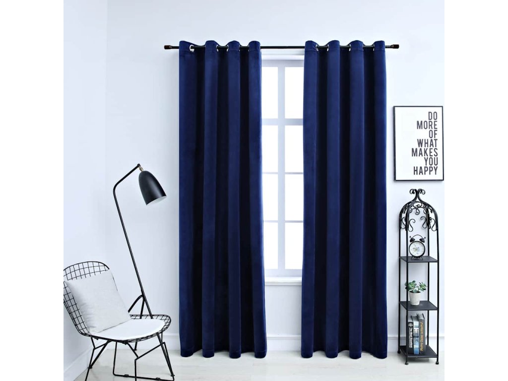 Zatemňovací závěsy s kroužky 2 ks samet tmavě modré 140x175 cm 134528