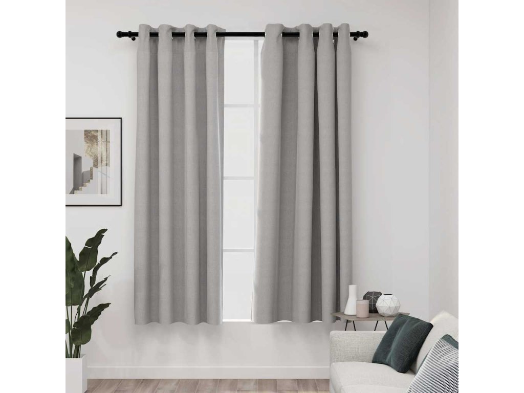 Zatemňovací závěsy s kroužky vzhled lnu 2 ks šedé 140 x 175 cm 321168