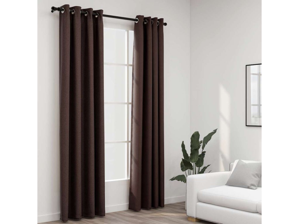Zatemňovací závěsy s kroužky vzhled lnu 2 ks taupe 140 x 245 cm 321202