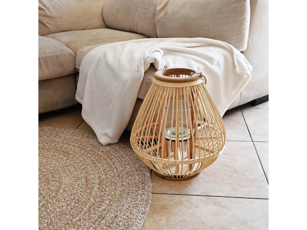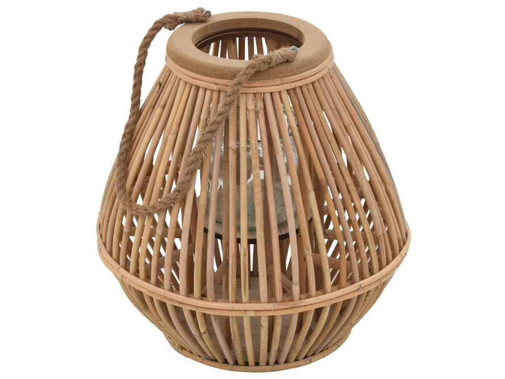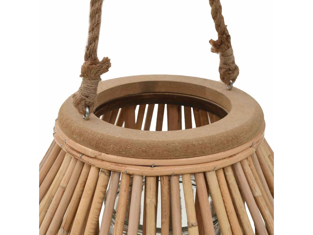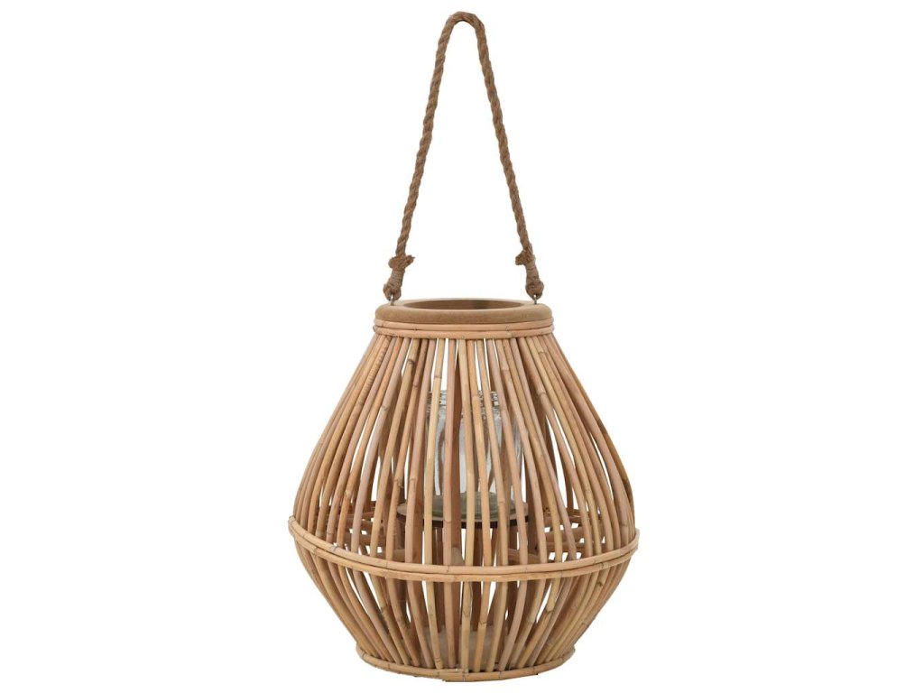 Závěsný svícen je vyroben z pevného pravého ratanu, který je přirozeně odolný a vhodný pro venkovní použití. Svíčku umístěte do vnitřní skleněné nádoby, která chrání plamen svíčky před sfouknutím větrem. Lucerničku na svíčku snadno zavěsíte pomocí lanka, které je součástí balení. Samozřejmě ji ale můžete též kamkoliv volně postavit.
