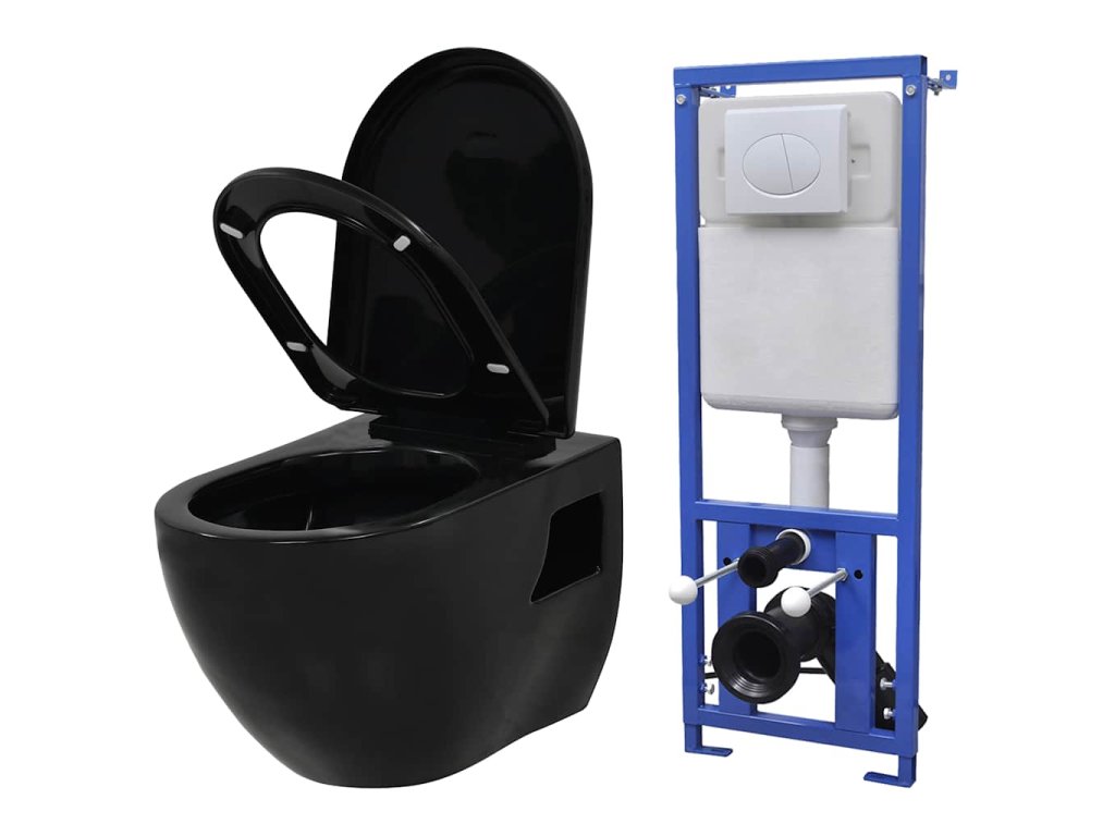 Závěsná toaleta s podomítkovou nádržkou keramická černá 275792