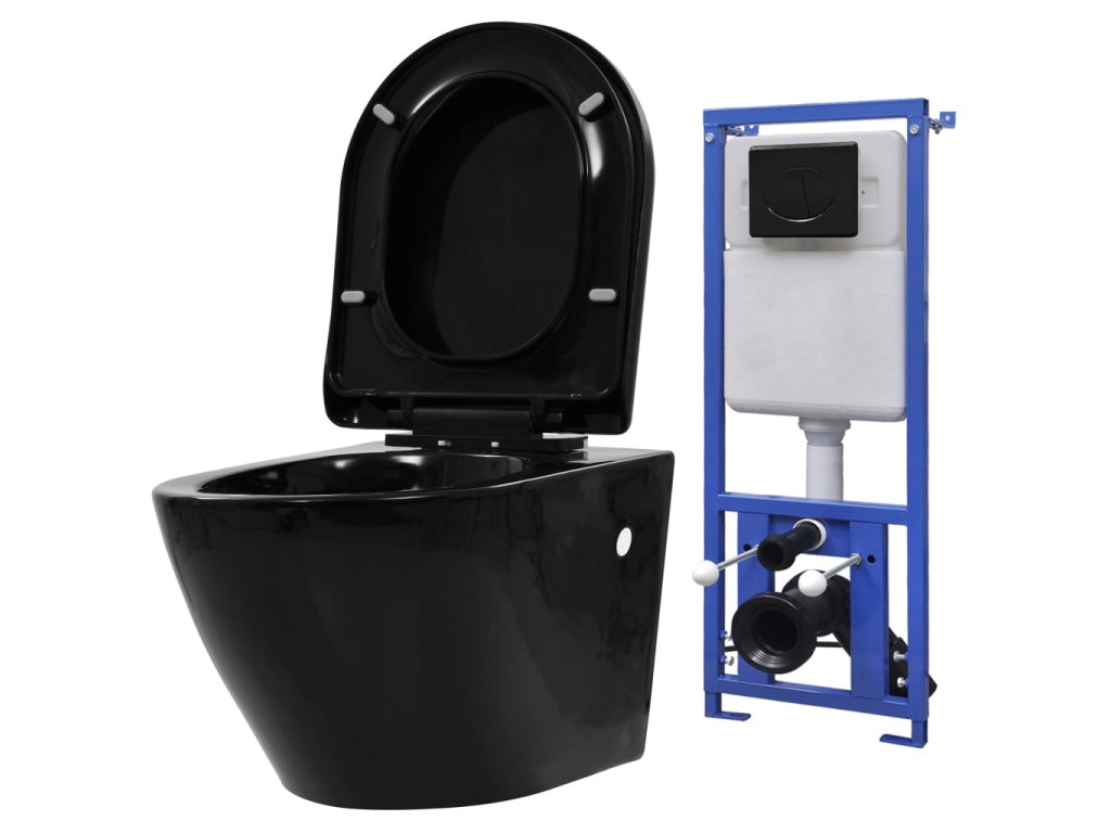 Závěsná toaleta s podomítkovou nádržkou keramická černá 3054478