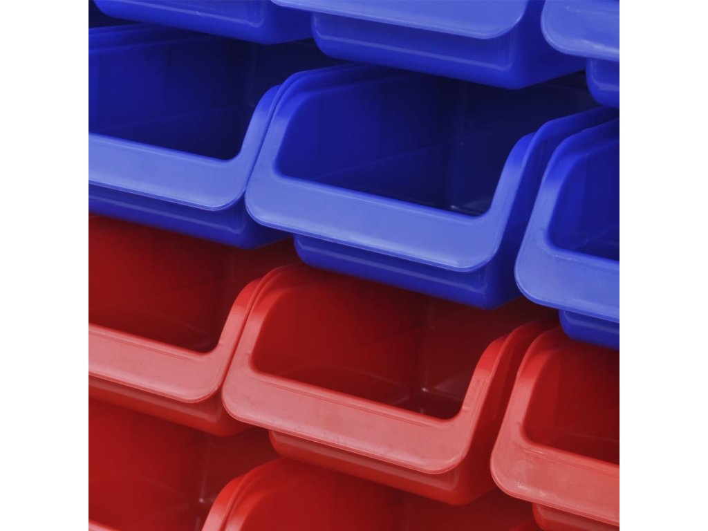Odnímatelné a stohovatelné zásobníky/přihrádky jsou vyrobeny z polypropylenu s vysokou hustotou, který odolává vysokým teplotám a je také odolný vůči většině průmyslových rozpouštědel. Pevné děrované desky lze snadno namontovat na stěnu.