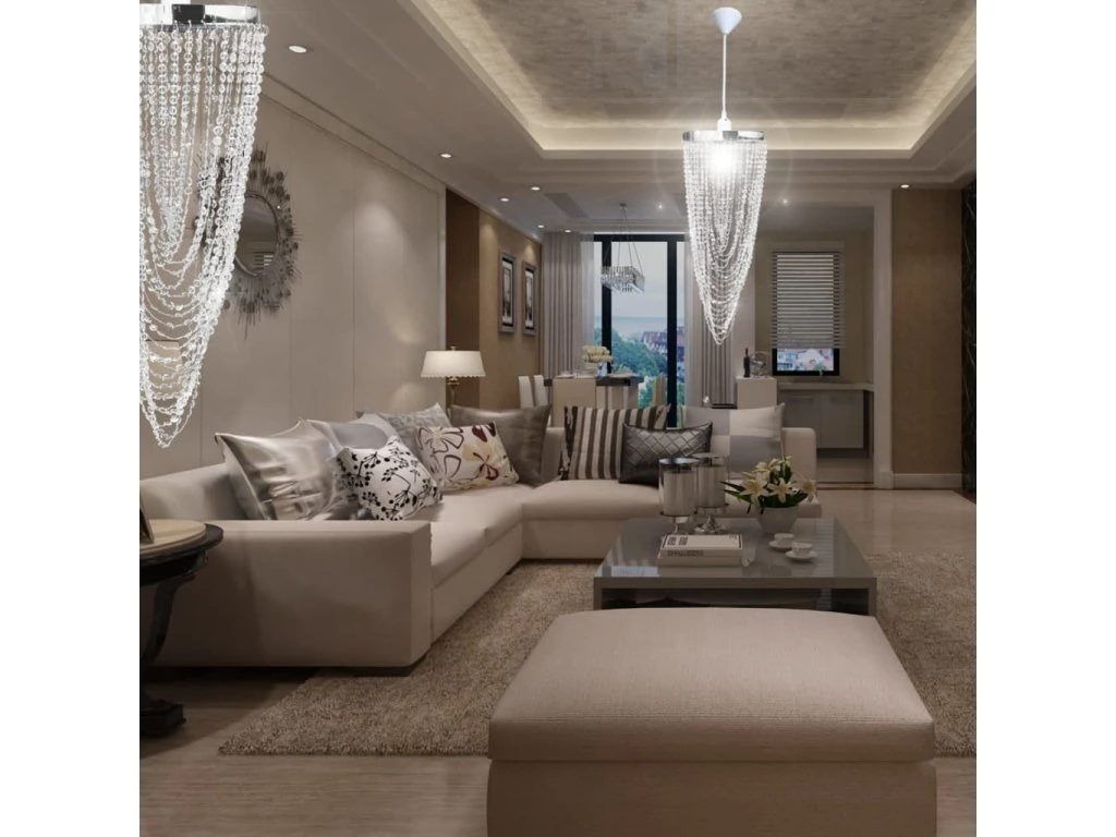 Vysoce kvalitní korálky se opravdu jasně blyští, efektně zachycují a odrážejí světlo a vytvářejí hru barev napříč celým spektrem. Tento elegantní závěsný lustr ozdobí váš domov velmi luxusním způsobem.