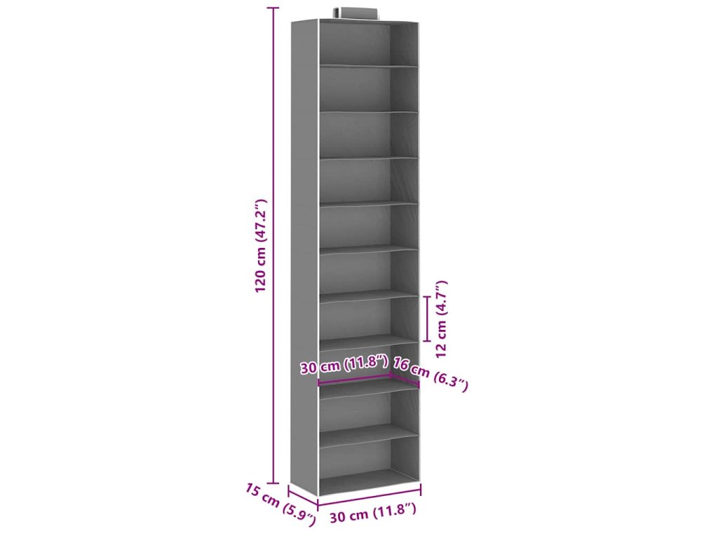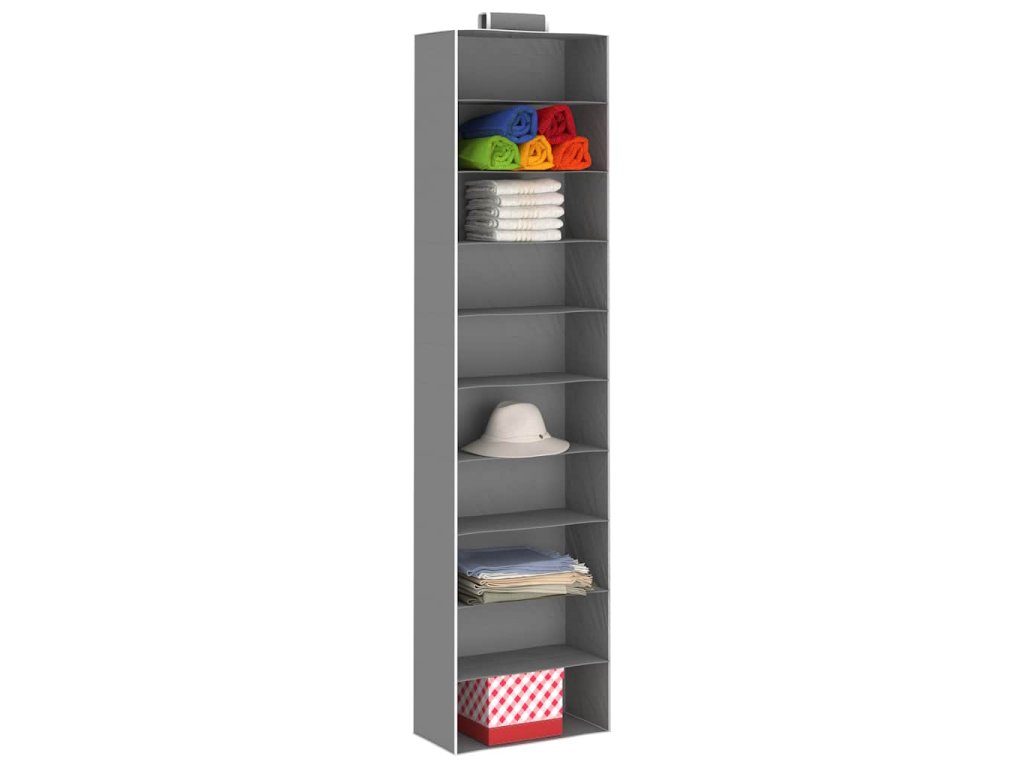 Těchto 10 otevřených přihrádek v každém závěsném organizéru dává pohodlný přehled o tom, co je kde uložené, a nabízí dostatek místa pro oblečení a doplňky, jako jsou svetry, ručníky, pyžama, oblečení, plavek, klobouků atd. Tento organizér je navíc skládací. Je extrémně kompaktní a snadno se přepravuje z místnosti do místnosti.