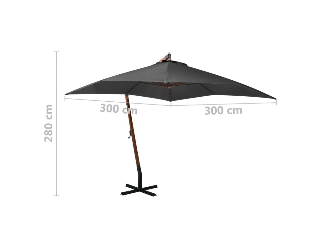 Závěsný zahradní slunečník s tyčí antracit 3x3 m masivní jedle 313774
