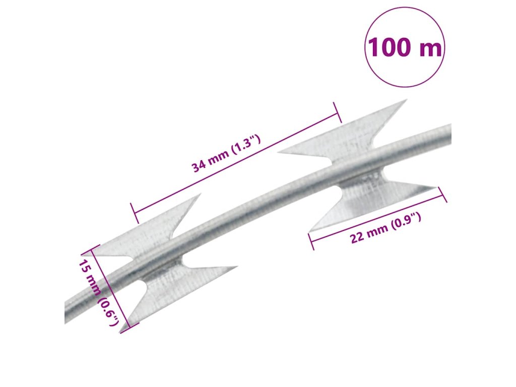 Solidní žiletkový drát je už navinutý do spirál a opatřený 3 sponkami na každém návinu, což mu dodává trubicový tvar se smyčkami, které jsou příliš malé na to, aby jimi prolezl člověk. To udrží všechny nezvané hosty mimo vaši zahradu. Žiletkový drát můžete navinout na horní část vašeho zahradního plotu pro mimořádnou bezpečnost.