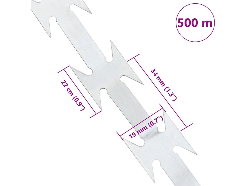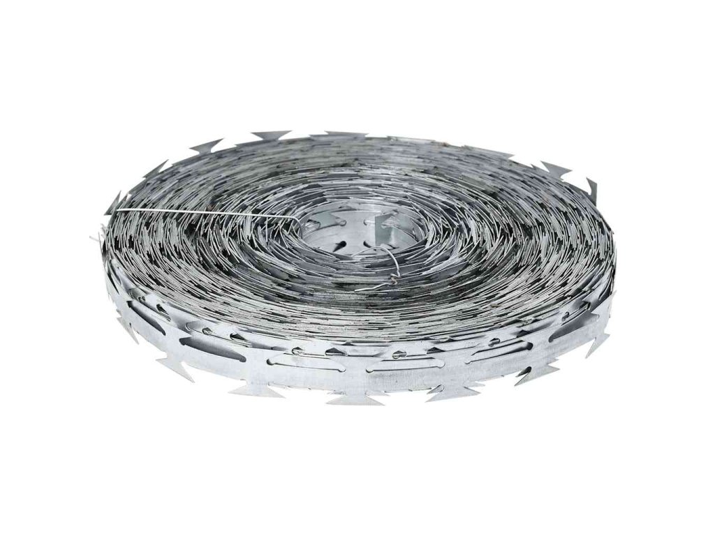 Náš žiletkový ostnatý drát je vyroben z vysoce kvalitní pozinkované oceli, díky čemuž je odolný vůči klimatickým vlivům, vysoce trvanlivý a je snadné ho vytvarovat do ideálního tvaru pro vaše potřeby. Jedná se o robustní ostnatý drát, jež se rozpíná do šířky 500 m a můžete jej omotat okolo horní části vašeho zahradního plotu pro zvýšenou bezpečnost. Concertina design rovněž zamezuje vniku nezvaných hostů do vaší zahrady.