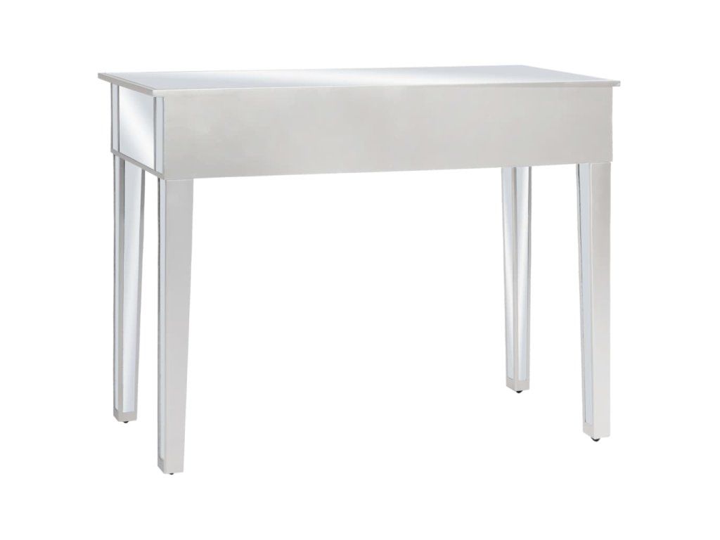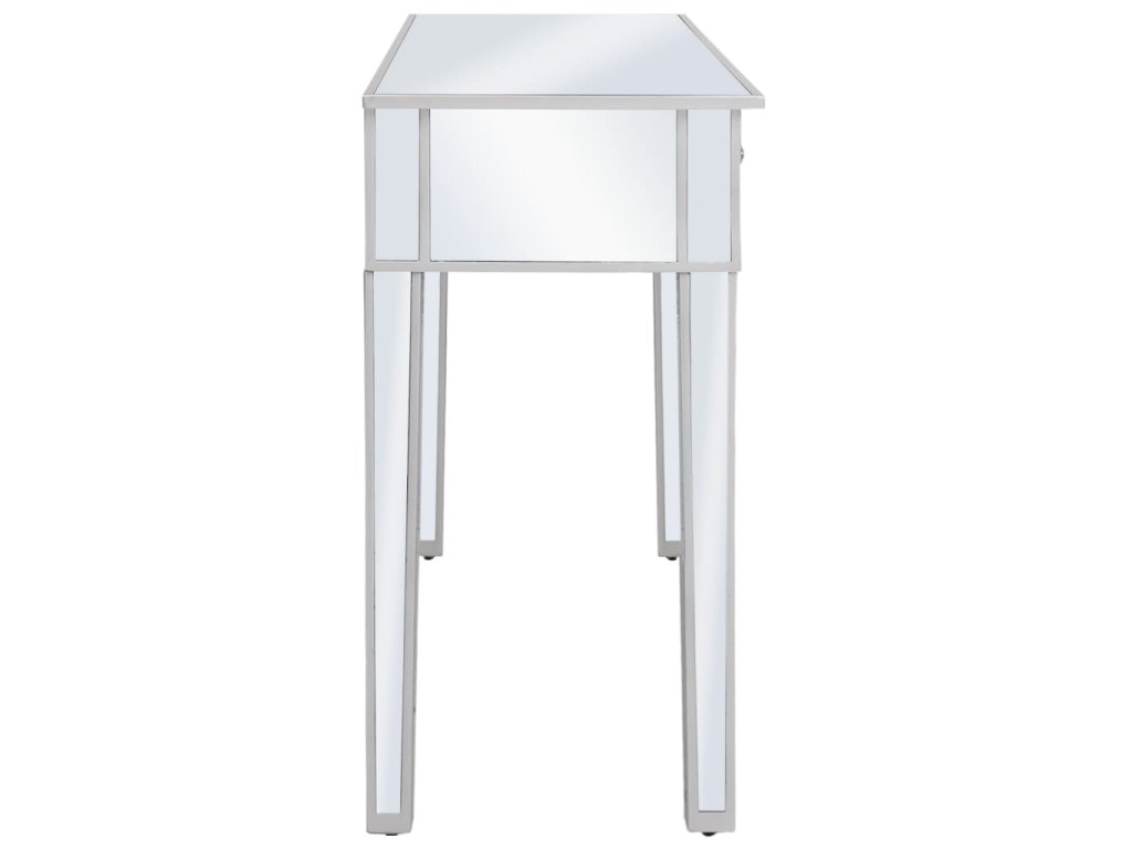 Tento moderní zrcadlový konzolový stolek vnese dotek do vaší domácnosti elegance. Zrcadlový povrch tohoto stolku okamžitě rozzáří vaši domácnost a vytvoří dojem prostoru. Lze jej použít také jako stůl do pracovny nebo do chodby.