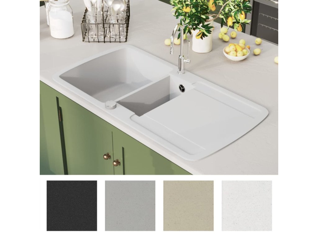 Žulový kuchyňský dřez dvojitý bílý 144855
