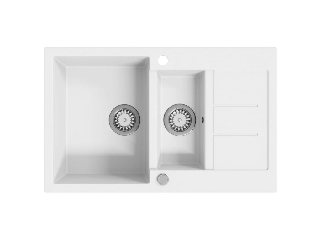 Žulový kuchyňský dřez dvojitý bílý 144859