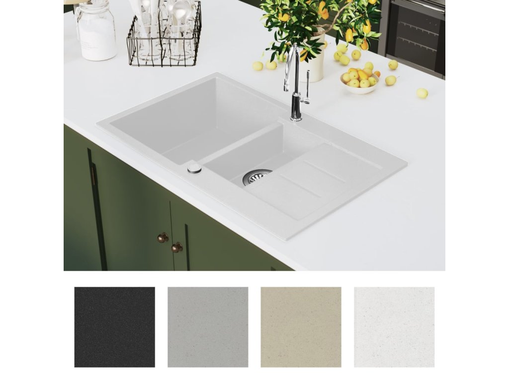 Dřez je zhotoven z vysoce kvalitní žuly, výborně tedy odolává teplu, poškrábání a nárazům a snadno se čistí. Navíc je oboustranný, takže ho můžete namontovat jak na pravou, tak na levou stranu. Součástí balení je i sítko na odpad pro jednodušší odstraňování nečistot.
