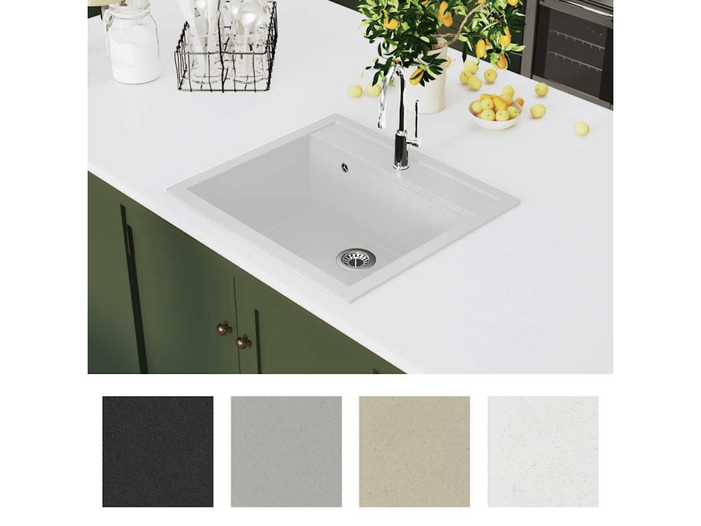Dřez je zhotoven z vysoce kvalitní žuly, výborně tedy odolává teplu, poškrábání a nárazům a snadno se čistí. Součástí balení je i sítko na odpad pro jednodušší odstraňování nečistot.