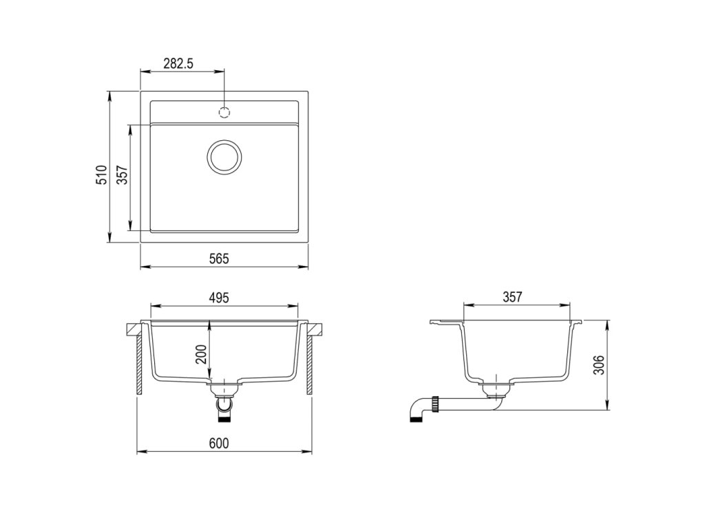 - Rozměry umyvadla: 495 x 357 x 200 mm (D x Š x H)
