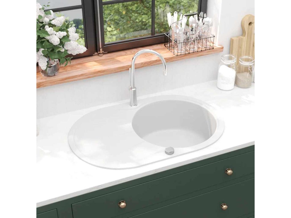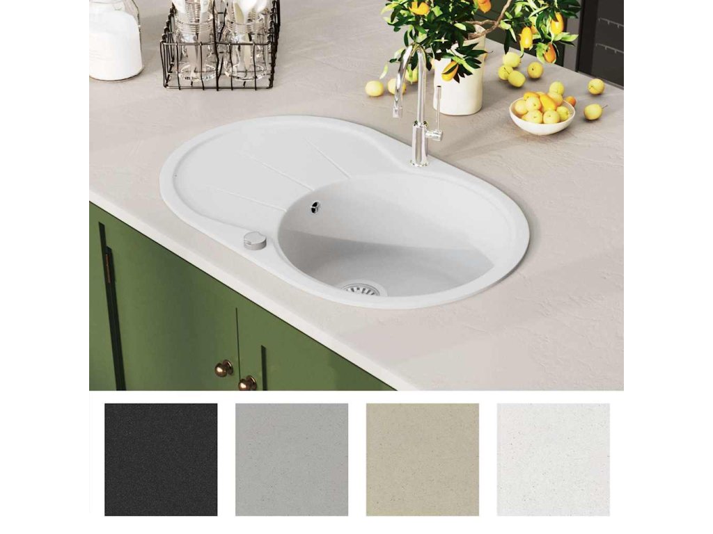 Žulový kuchyňský dřez jednoduchý oválný bílý 144867