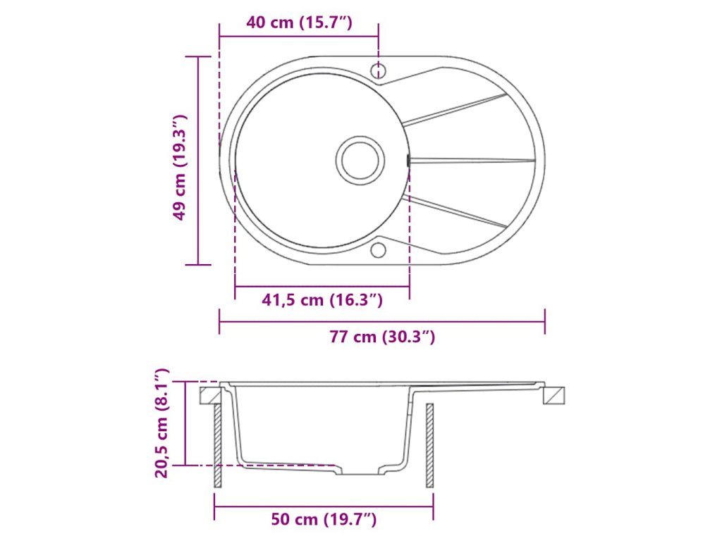 Dřez je zhotoven z vysoce kvalitní žuly, výborně tedy odolává teplu, poškrábání a nárazům a snadno se čistí. Navíc je oboustranný, takže ho můžete namontovat jak na pravou, tak na levou stranu. Součástí balení je i sítko na odpad pro jednodušší odstraňování nečistot.