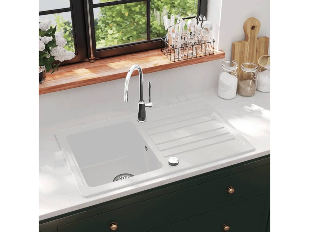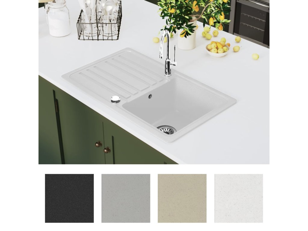 Žulový kuchyňský dřez single s odkapávačem reverzibilní bílá 141671