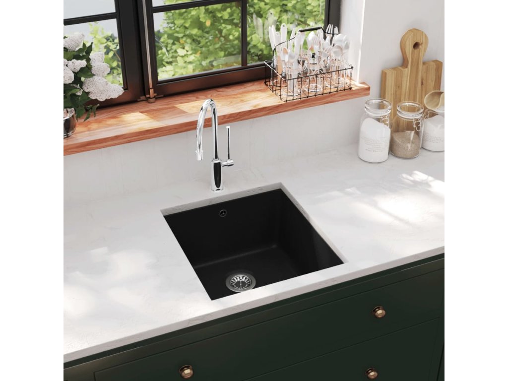 Žulový kuchyňský dřez single umyvadlo černé 142960