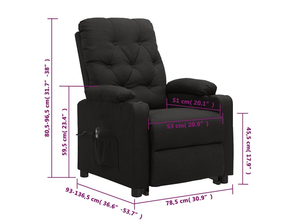 - Rozměry sklopeného křesla: 78,5 x 136,5 x 80,5 cm (Š x H x V)