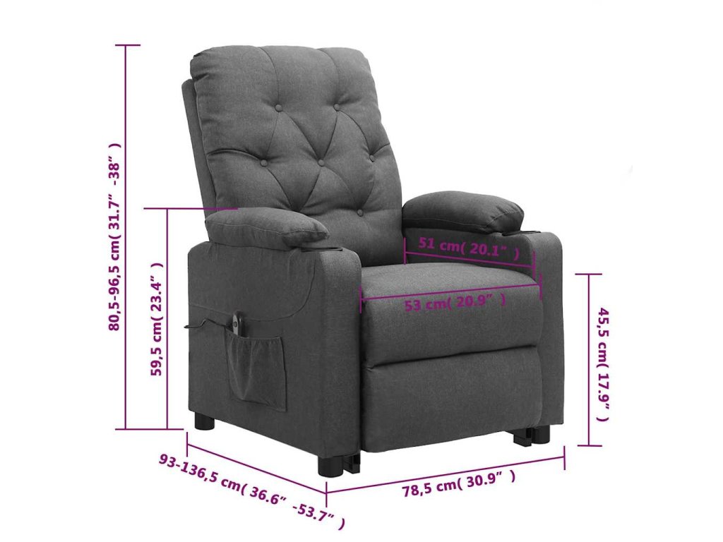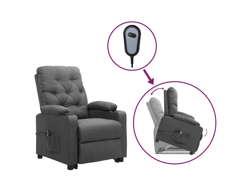 - Funkce sklápění: Toto polohovací křeslo pro seniory je vybaveno elektromotorem pro jeho zvedání. Vzhledem k funkci zvedání, která tlačí celé křeslo nahoru, můžete snadno vstát, aniž byste zatěžovali záda a kolena pomocí 2tlačítkového ručního ovládání.