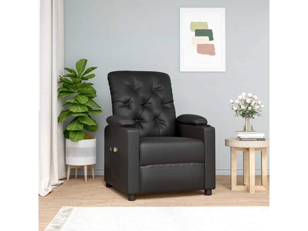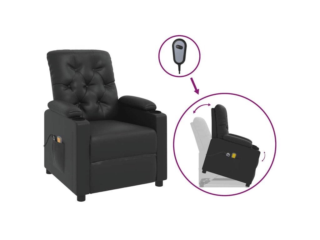 Zvedací masážní křeslo černé umělá kůže 3093504