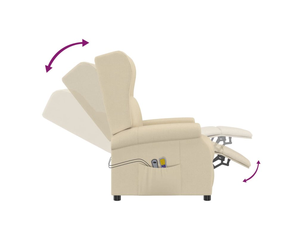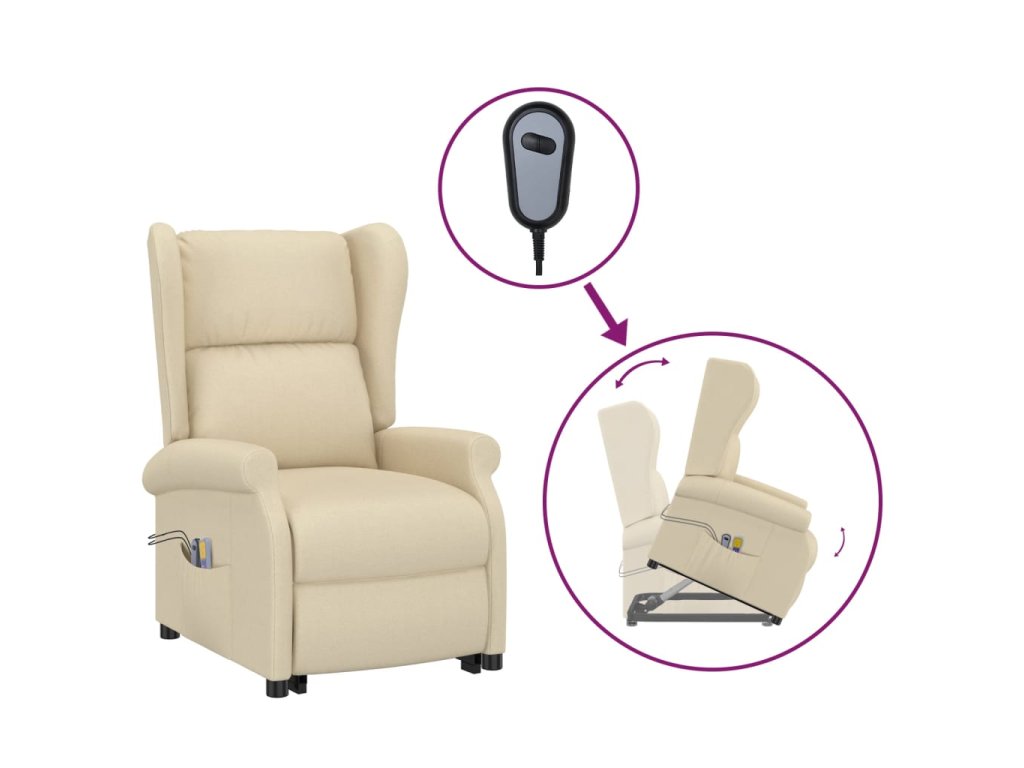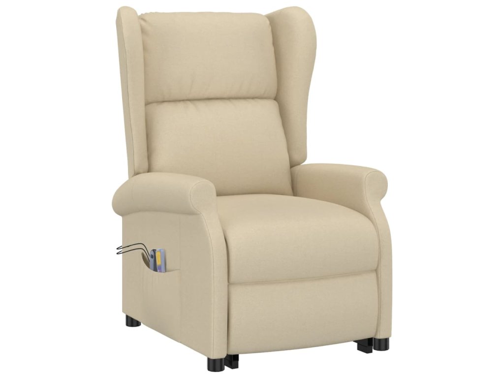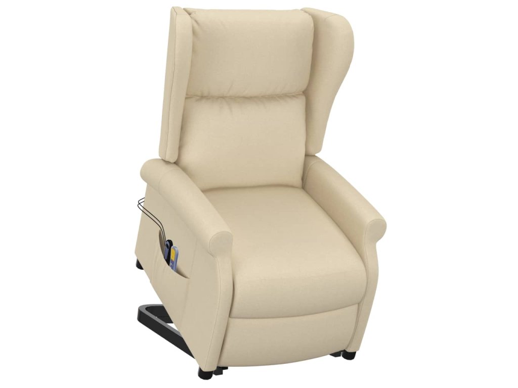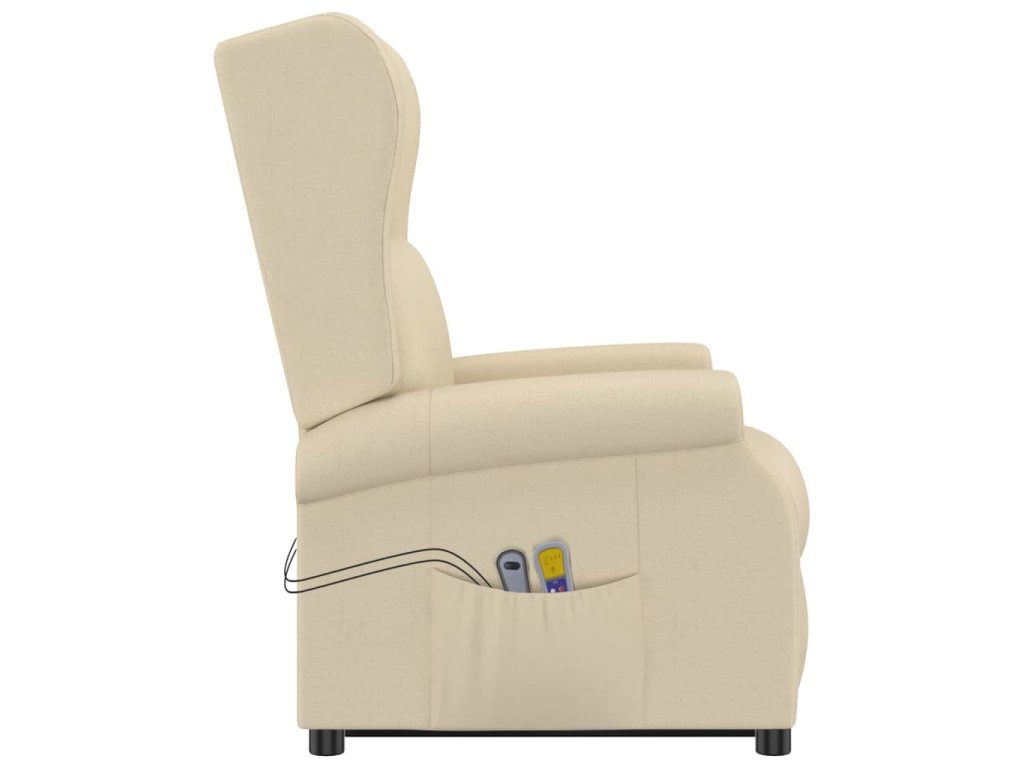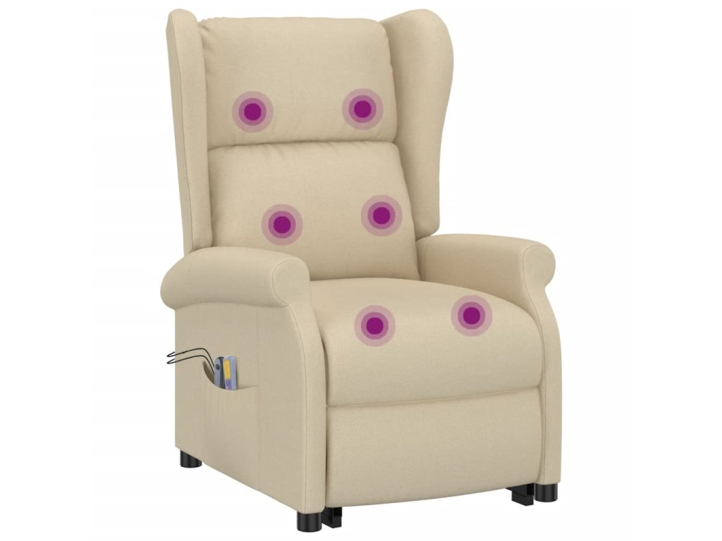 Zvedací masážní křeslo krémové textil 289749