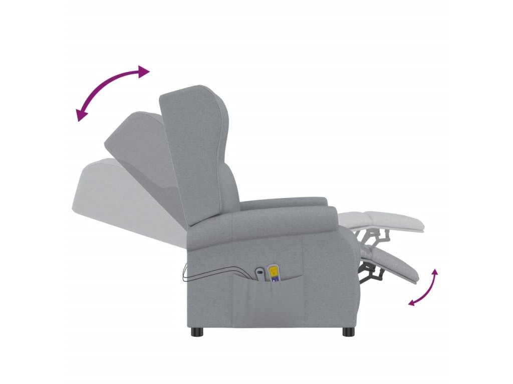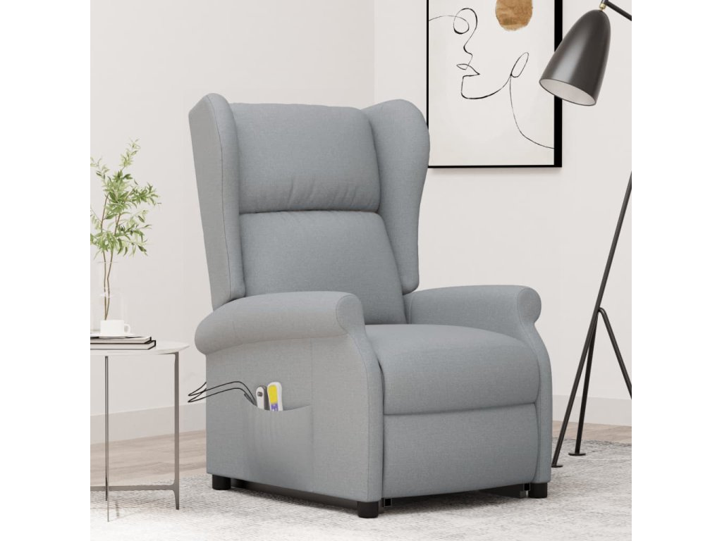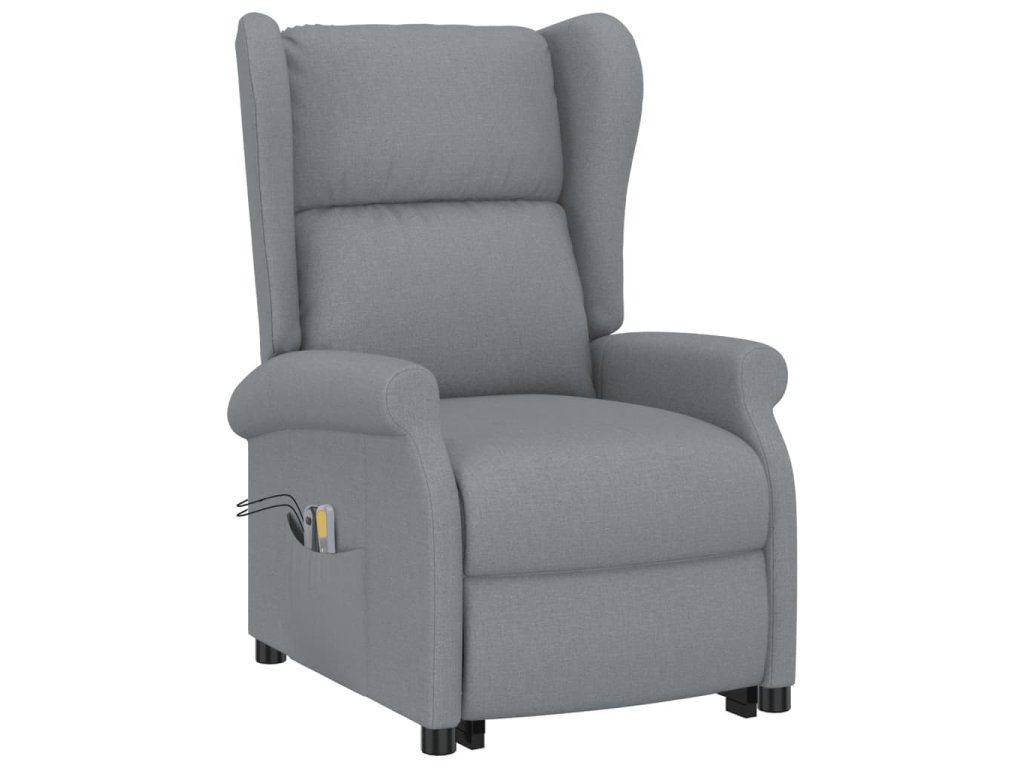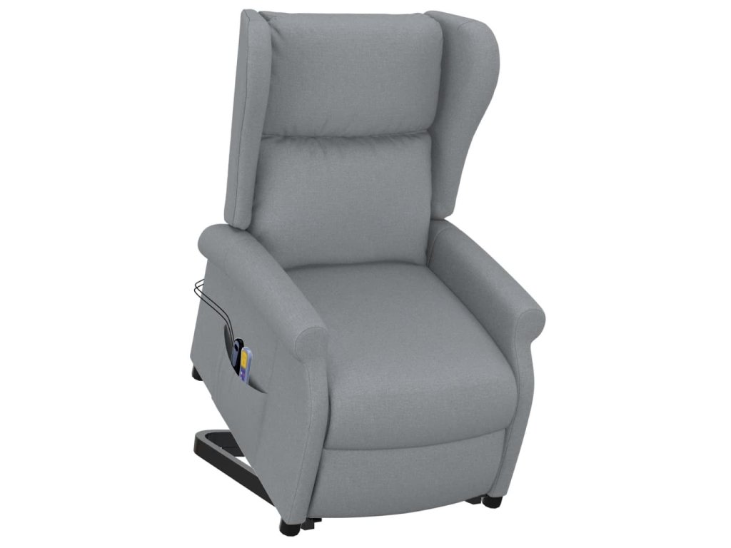 Zvedací masážní křeslo světle šedé textil 289740