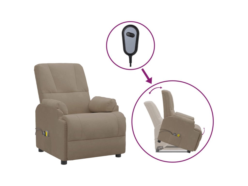 Zvedací masážní křeslo taupe umělá semišová kůže 3093184