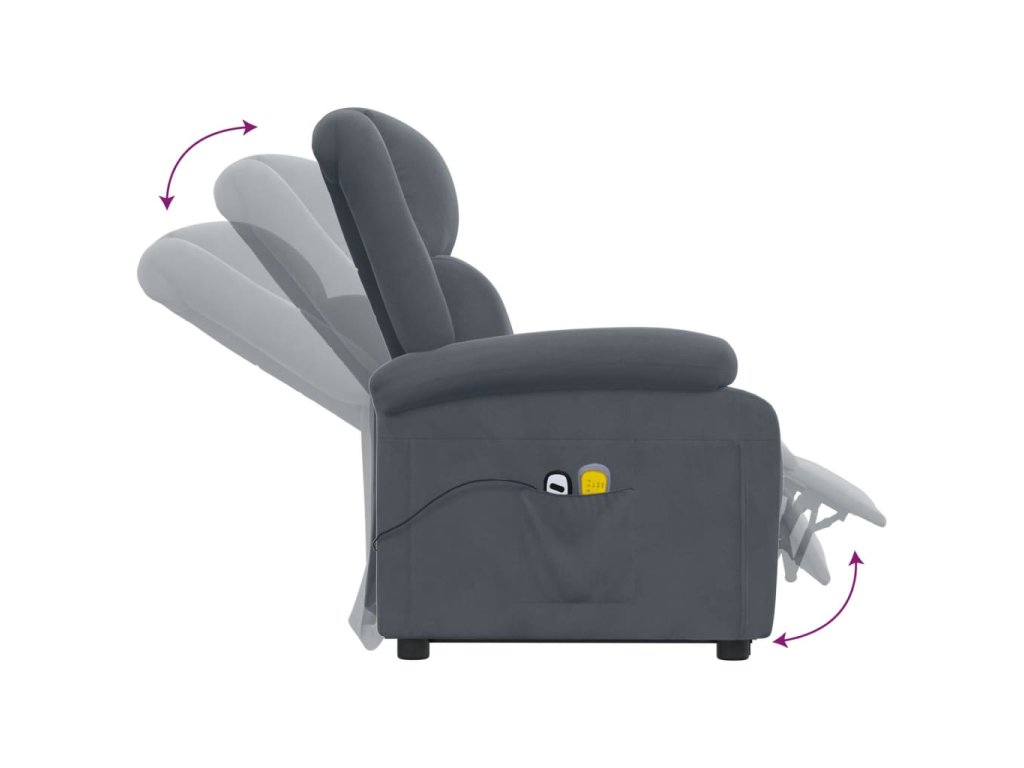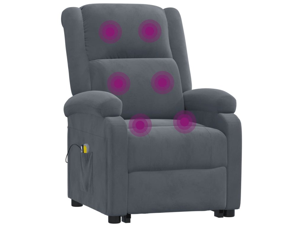 Zvedací masážní křeslo tmavě šedé samet 3124837