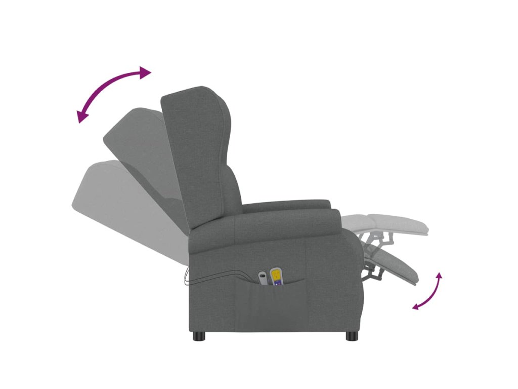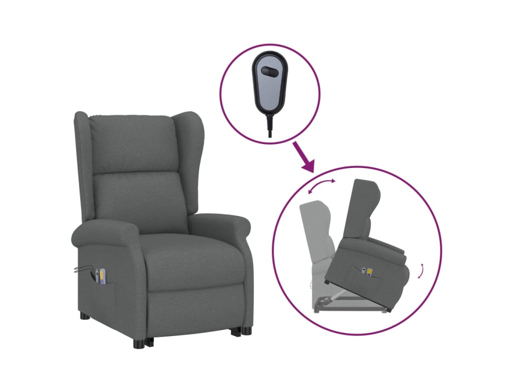 Zvedací masážní křeslo tmavě šedé textil 289741