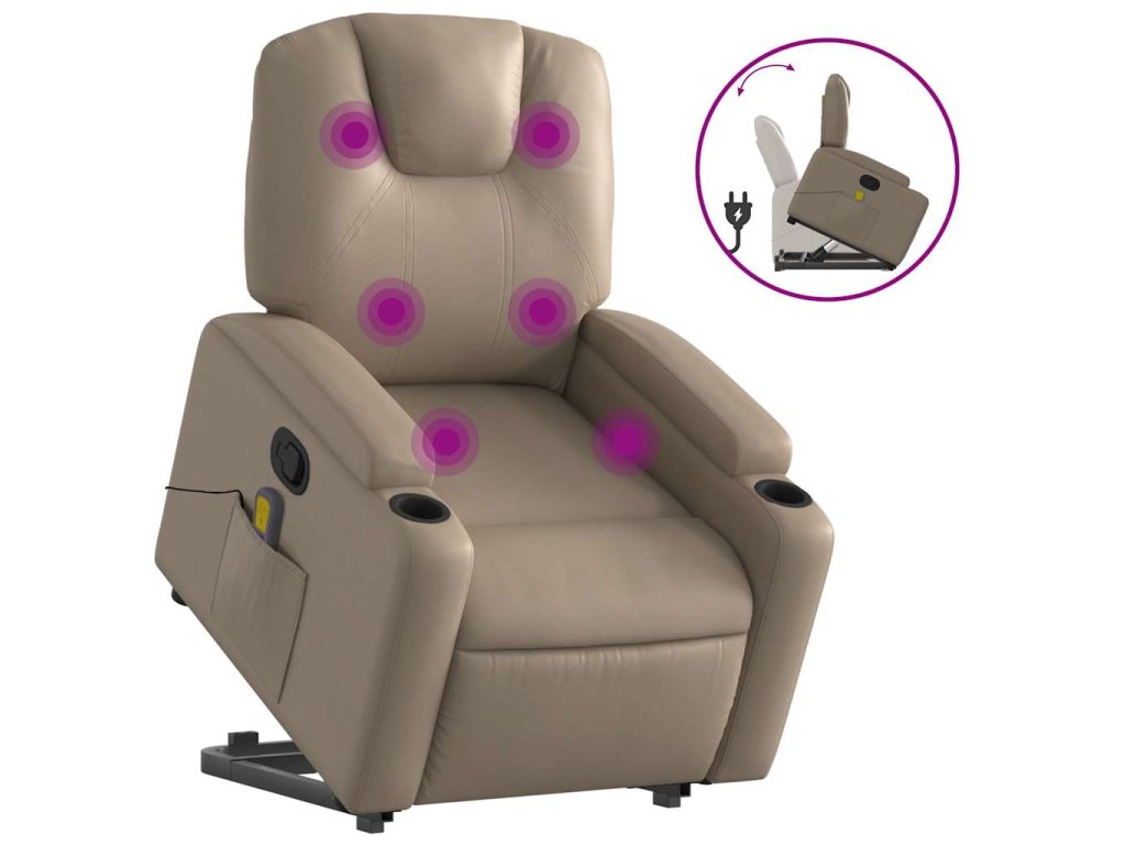 Zvedací masážní polohovací křeslo cappuccino umělá kůže 3204443