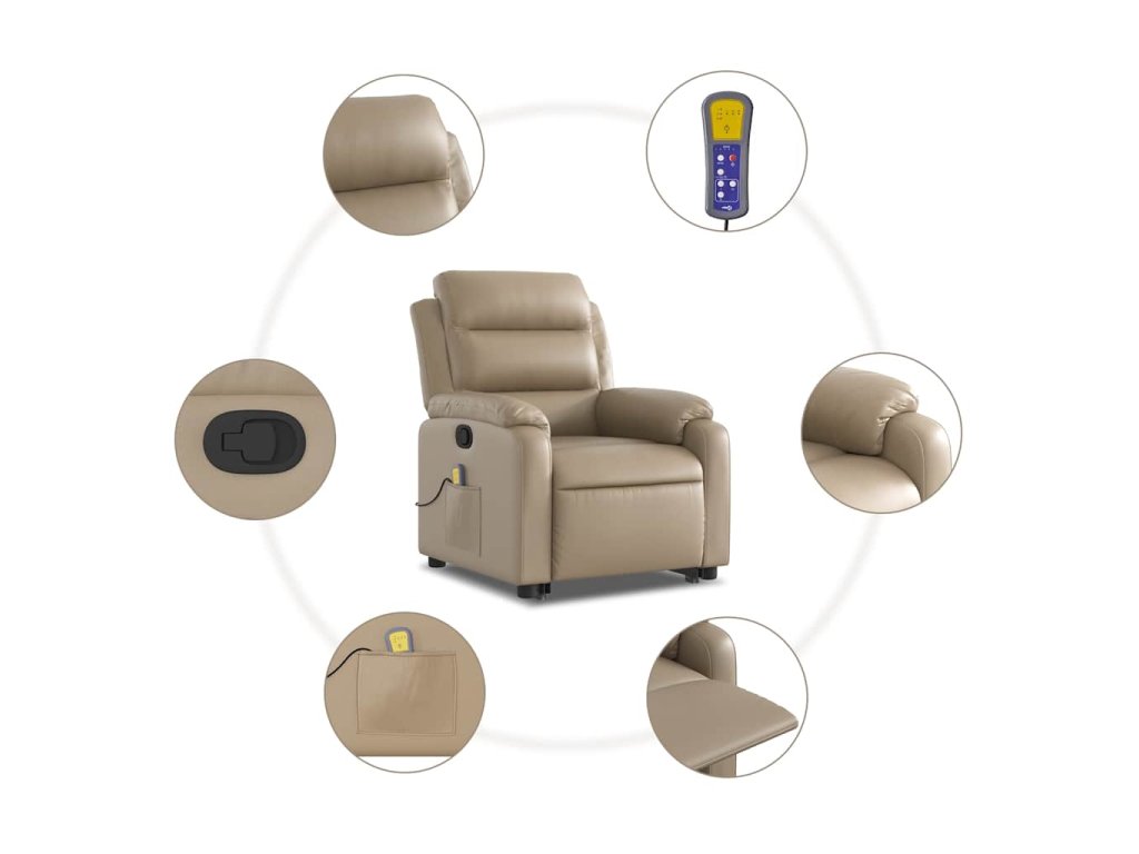 Zvedací masážní polohovací křeslo cappuccino umělá kůže 3205055