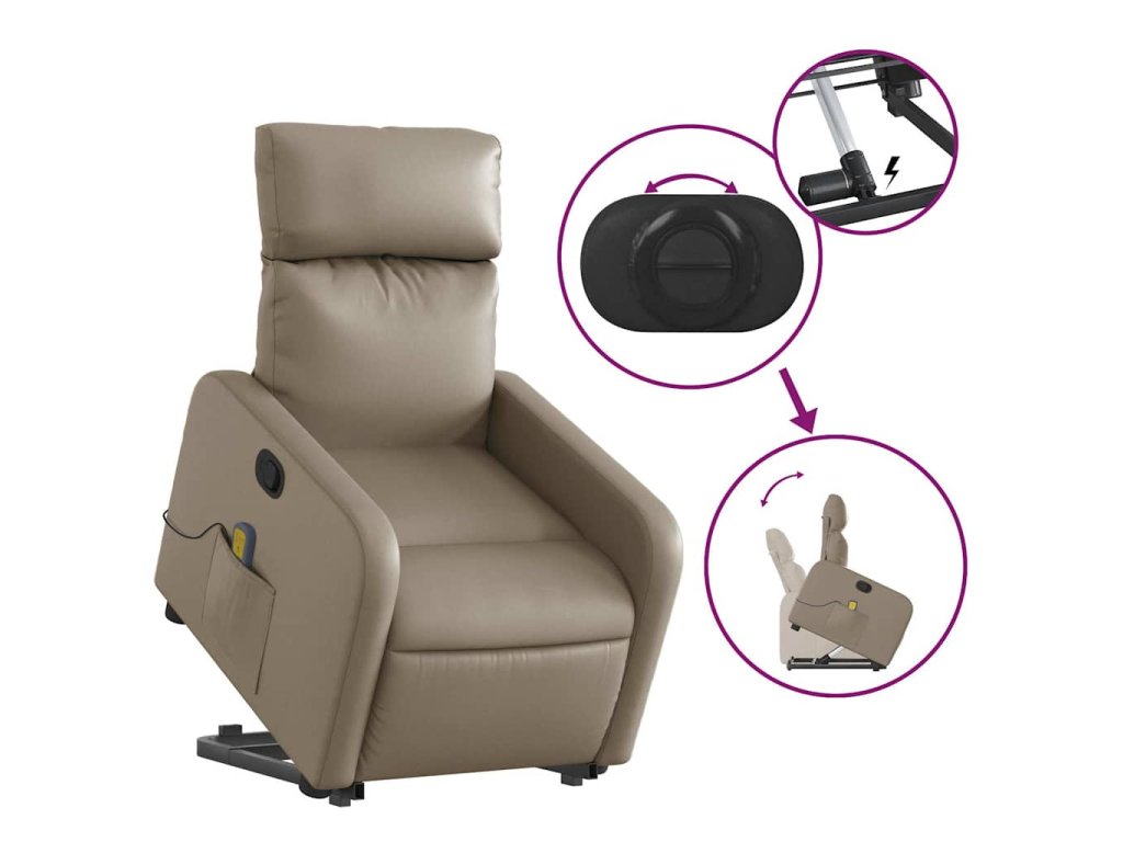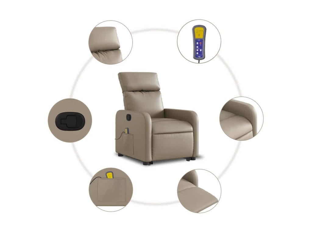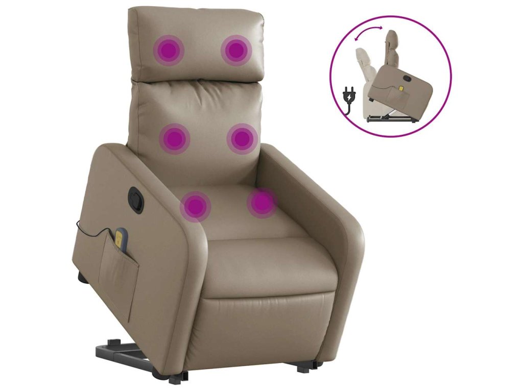 Zvedací masážní polohovací křeslo cappuccino umělá kůže 3206762