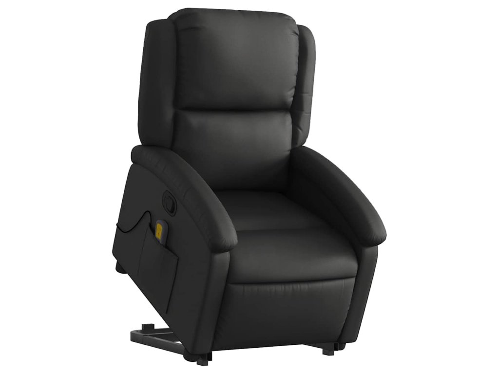 Zvedací masážní polohovací křeslo černé pravá kůže 3204266