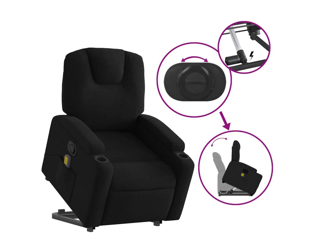Zvedací masážní polohovací křeslo černé textil 3204382
