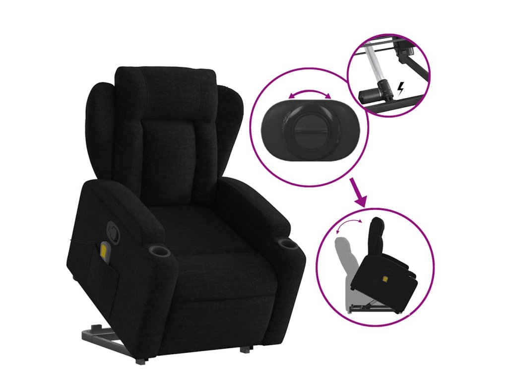 Zvedací masážní polohovací křeslo černé textil 3204496
