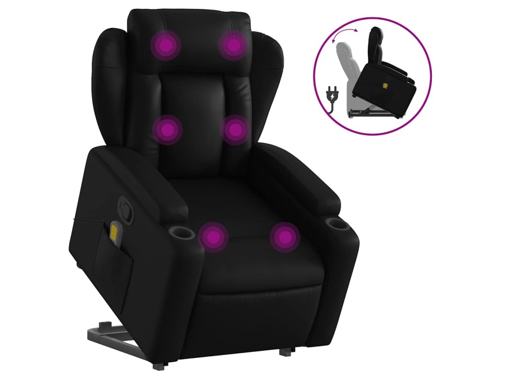 Zvedací masážní polohovací křeslo černé umělá kůže 3204551