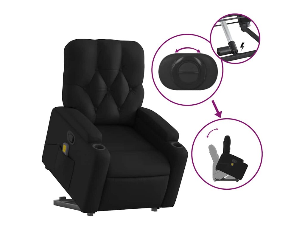 Zvedací masážní polohovací křeslo černé umělá kůže 3204779
