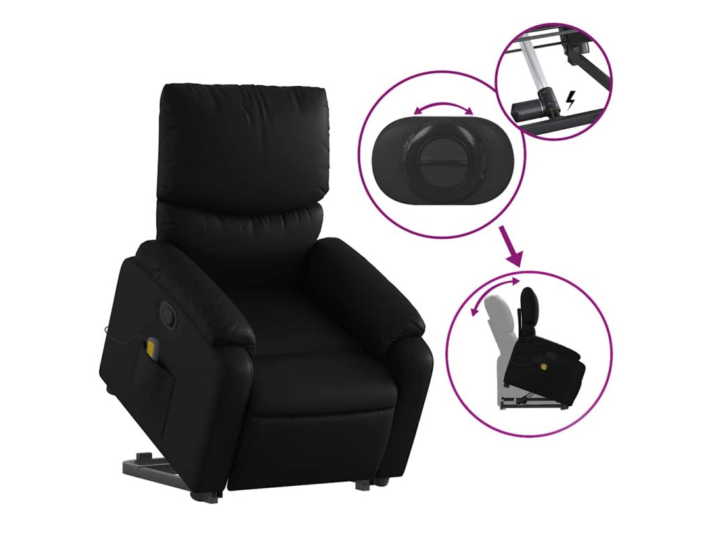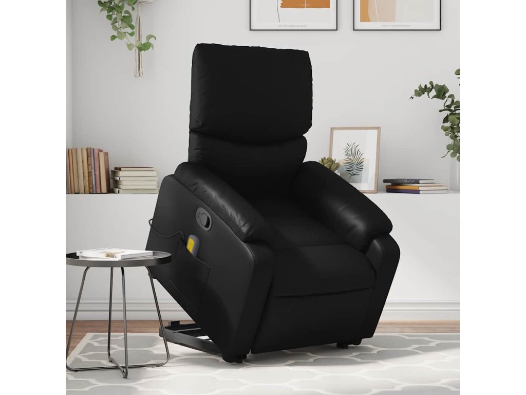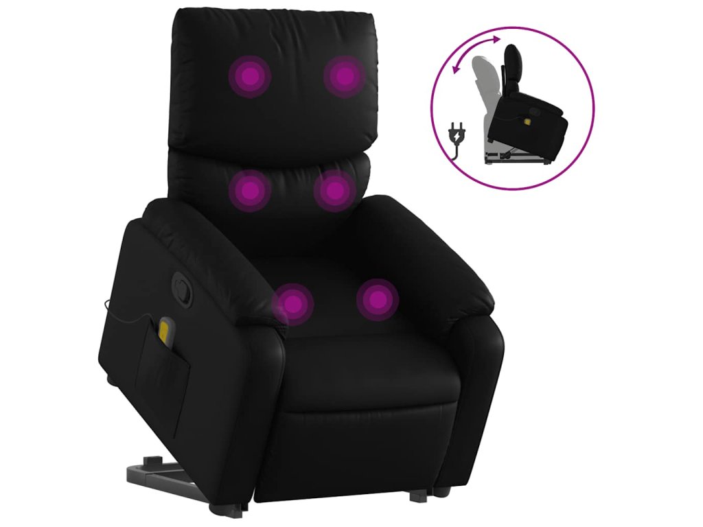 Zvedací masážní polohovací křeslo černé umělá kůže 3204893