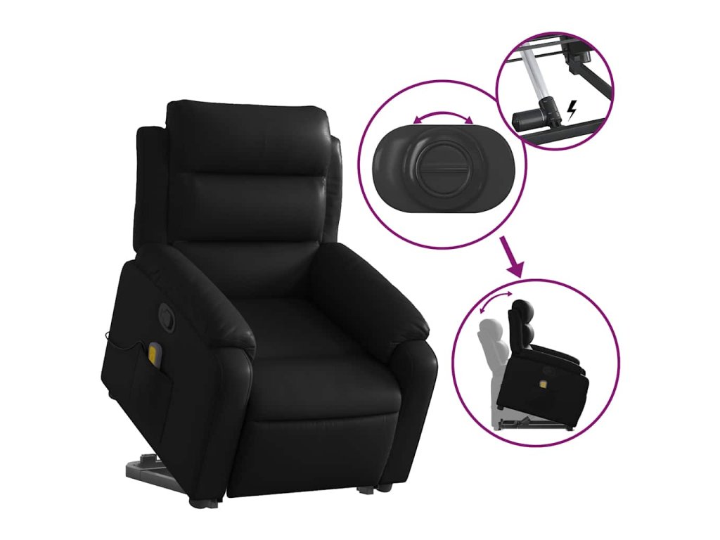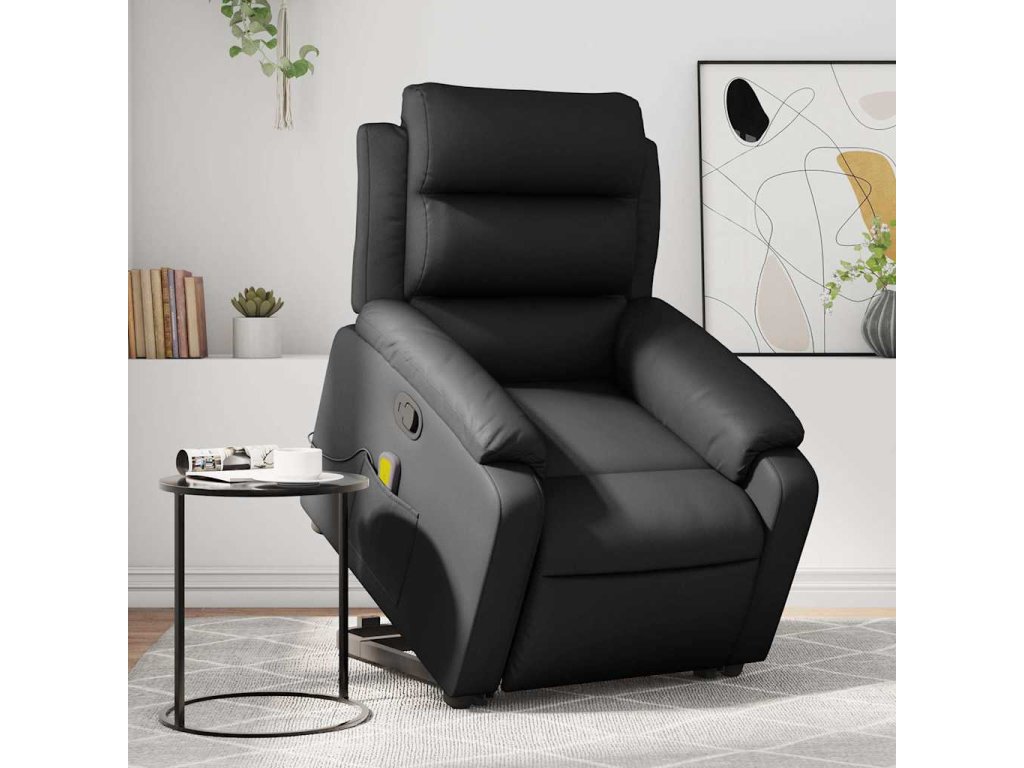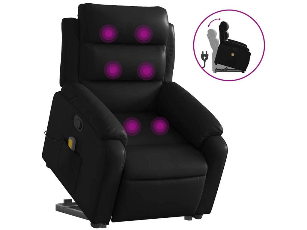 Zvedací masážní polohovací křeslo černé umělá kůže 3205049