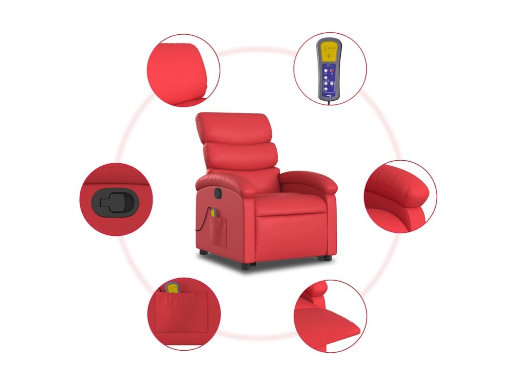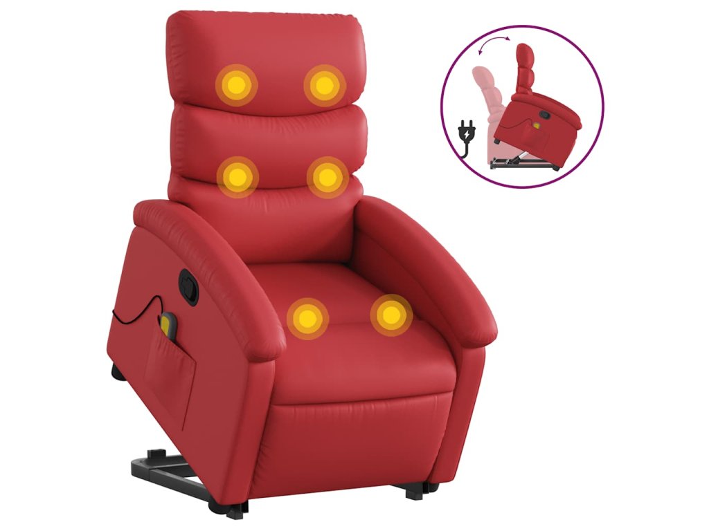 Zvedací masážní polohovací křeslo červené umělá kůže 3204052