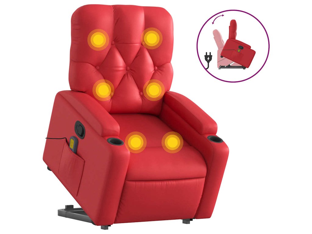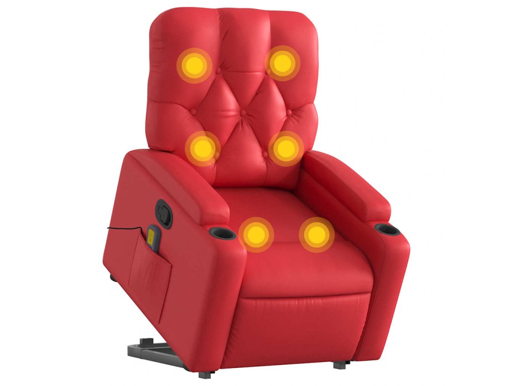 Zvedací masážní polohovací křeslo červené umělá kůže 3204784