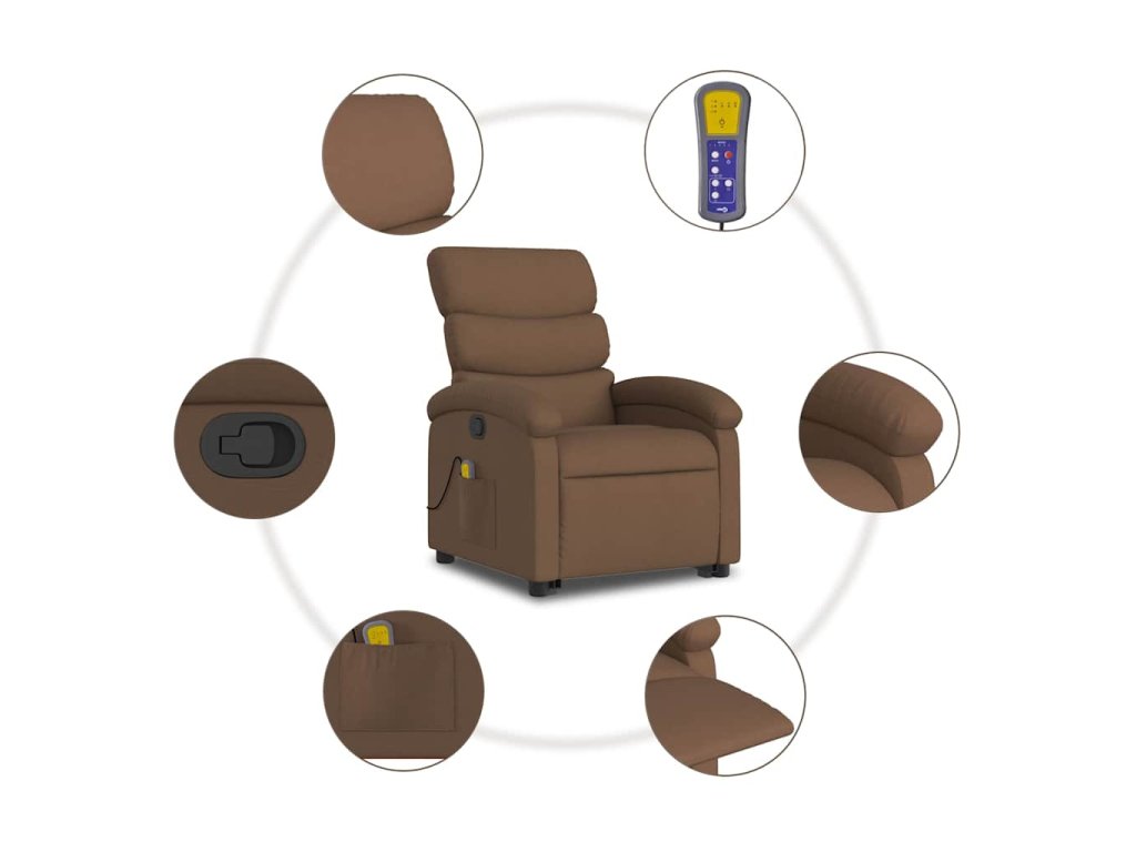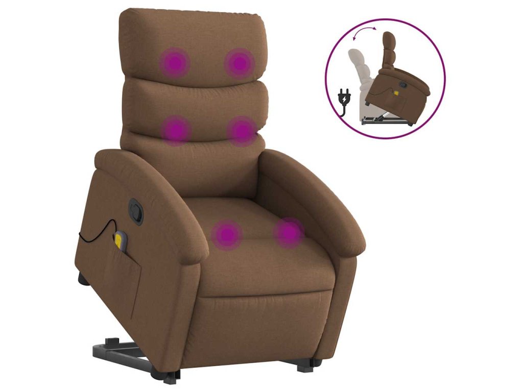 Zvedací masážní polohovací křeslo hnědé textil 3203994